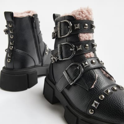 River Island Girls Black Borg Lined Buckle Boots