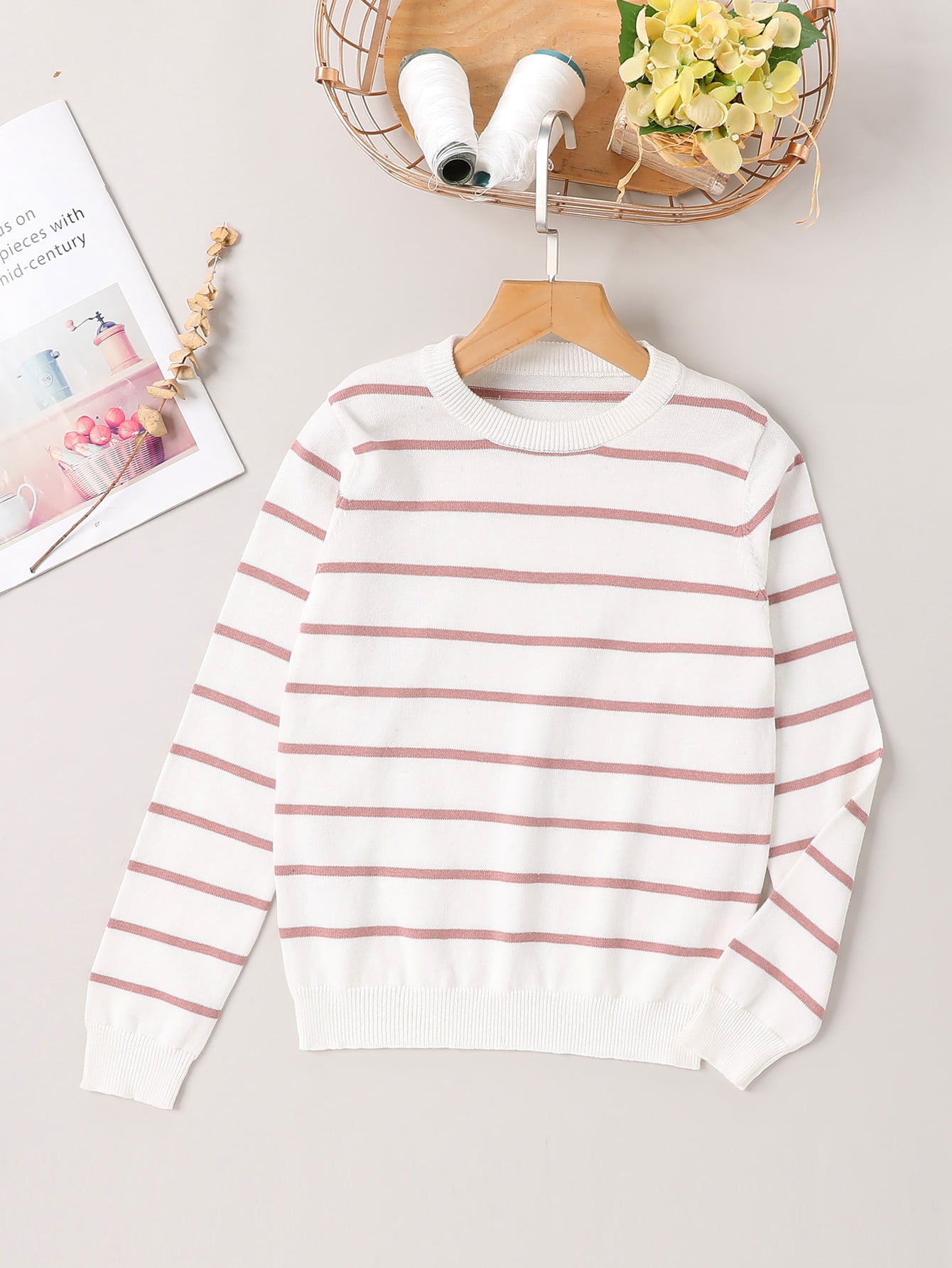 Girls Striped Crew Neck Sweater Casual